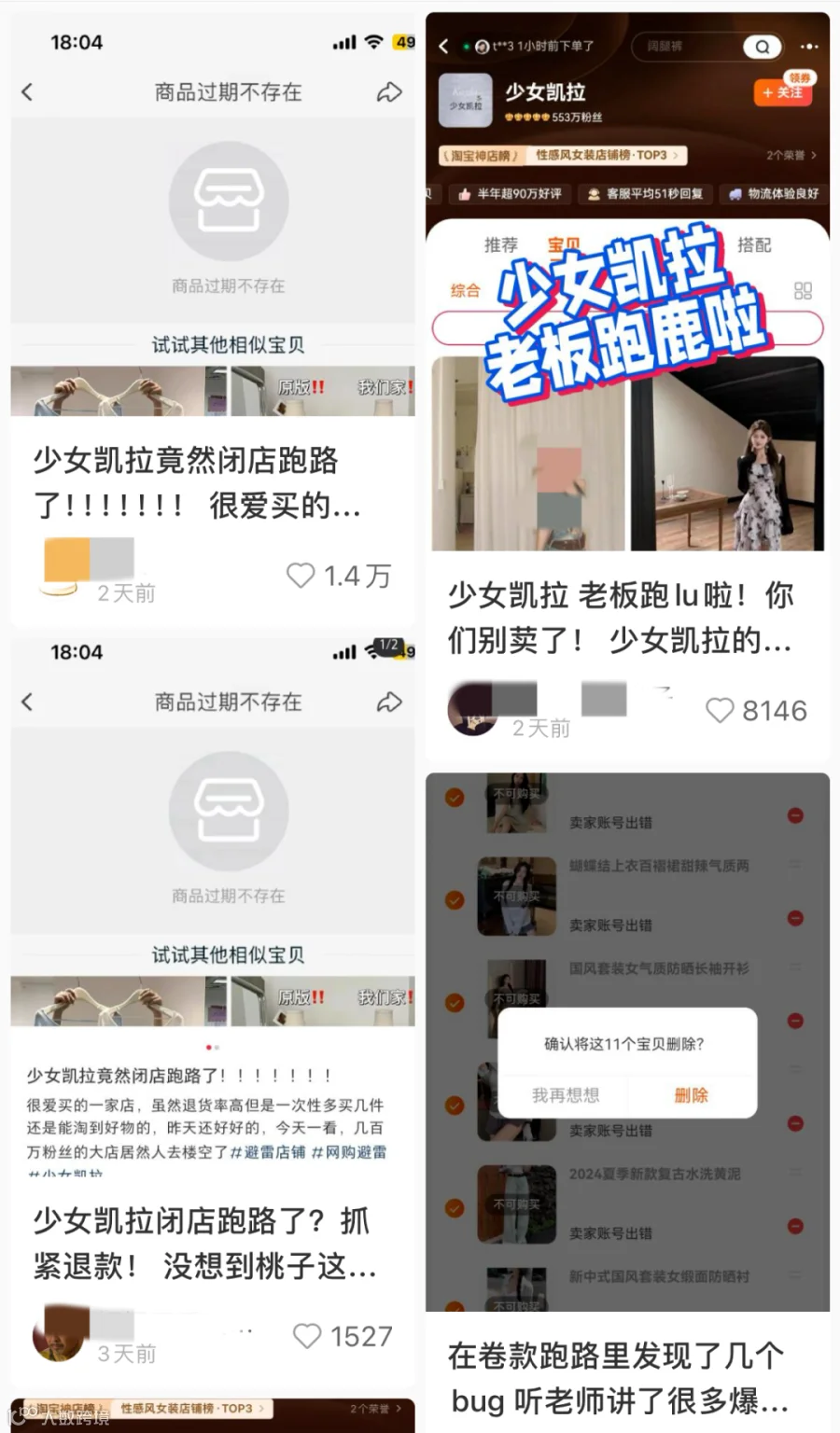有多位消费者对记者透露,“少女凯拉”是自己经常光顾的一家网店,虽然退货率很高,但一次性多买几件还是能淘到好衣服的。今日(14日)准备退货时发现,店铺竟然不见了。另有消费者表示,昨日(13日)还收到包裹,今日(14日)就看到店铺关门了。