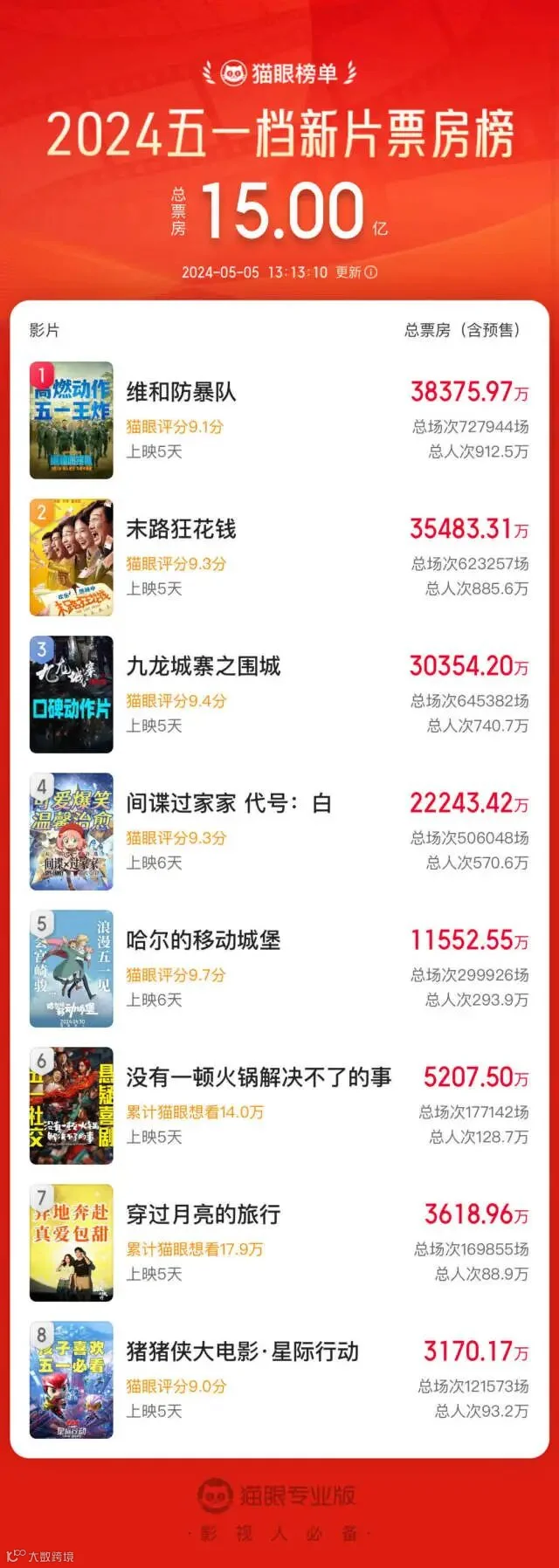 此外据猫眼专业版数据