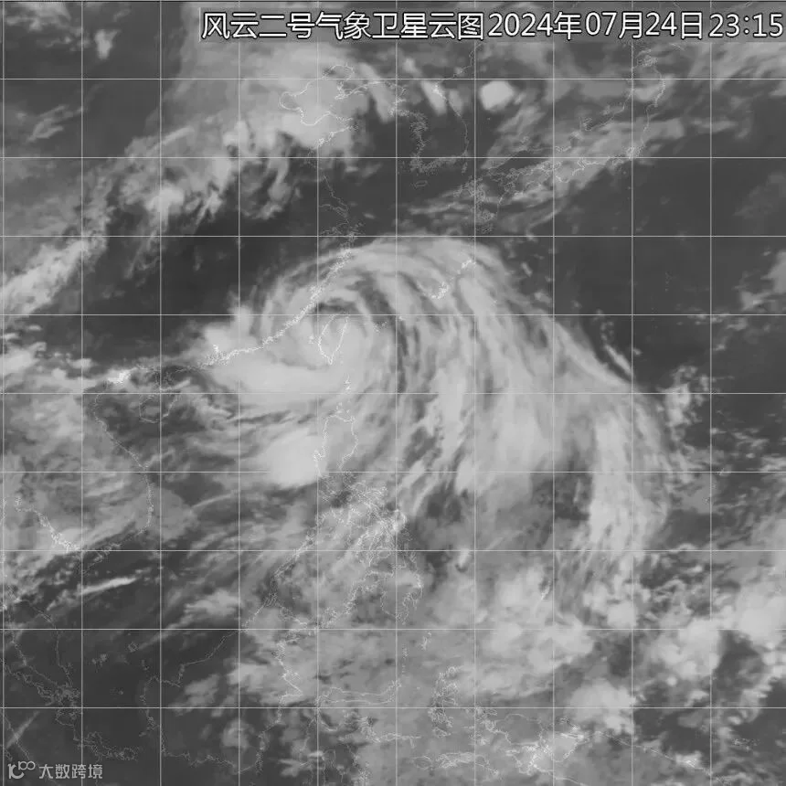 7月24日23时15分,临近登陆前的“格美”卫星影像 中央气象台风云二号气象卫星云图