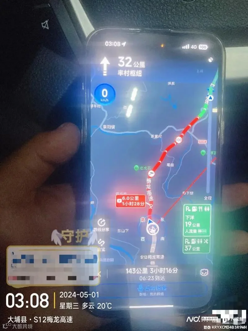 平时开6个半小时就到家了,这次,直到5月1日凌晨2时30分,他才抵达梅大高速茶阳路段。