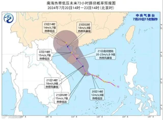 从目前的路径预测看,该热带低压将于21日增强为热带风暴级,进而获得台风命名,其风圈将影响到粤西多地,带来明显风雨。