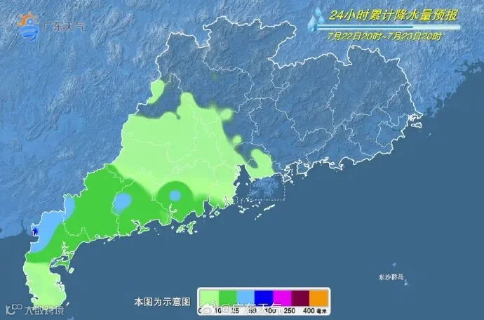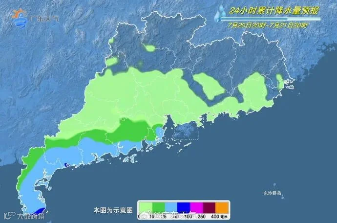23-24日,粤西市县阴天,有中雨局部大雨,其余市县有(雷)阵雨局部暴雨。最高气温:河源、梅州35~37℃,粤西市县28~31℃,其余市县32~35℃。