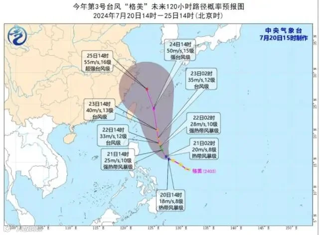 截至14时,“格美”中心位于距菲律宾马尼拉偏东方向约730公里的洋面上,中心附近最大风力8级(18米/秒)。预计,“格美”将以10公里左右的时速向北偏西方向移动,强度逐渐加强,渐趋向台湾岛以东洋面,对广东海陆无直接影响。