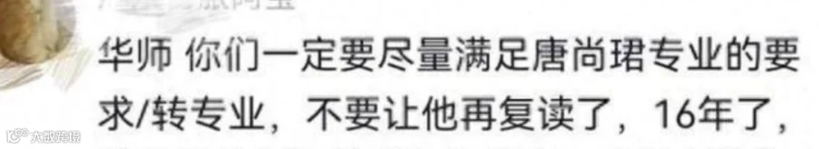 “唐尚珺要是被调剂了,能不能给他换到物理学,不然又要去复读了。”“华师,你们一定要尽量满足唐尚珺专业的要求/转专业,不要让他再复读了,16年了。”