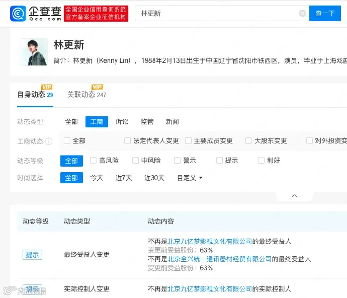 林更新不再是实际控制人