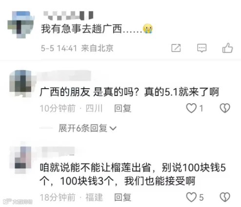 此外,近年来广西北海、崇左、钦州、梧州等地相继试种榴莲,而榴莲从种植到结果需要4到5年的时间,实现“榴莲自由”还需要耐心等待。