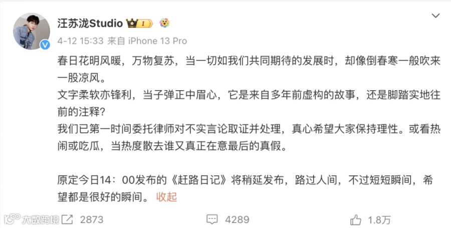 委托律师对不实言论取证并处理,真心希望大家保持理性。或看热闹或吃瓜,当热度散去谁又真正在意最后的真假。