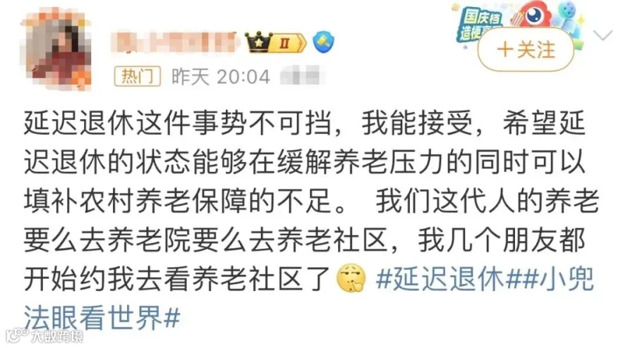 随着“延迟退休”讨论度的持续走高