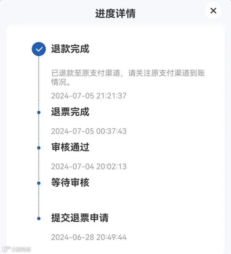 “上午给东航打了电话,下午回电让我先在App申请,要写一个工单号。说是审核也需要时间,先提交申请。7月4日,审核通过,7月5日钱款到账。虽然审核时间很漫长,但到账还是挺快的。”