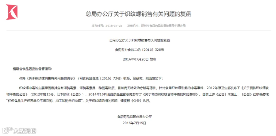 配图却像是国家明令禁止销售的织纹螺
