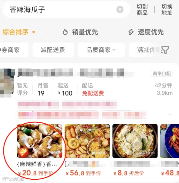 记者在外卖平台搜索“香辣海瓜子”,发现仍有不少商家疑似售卖织纹螺。