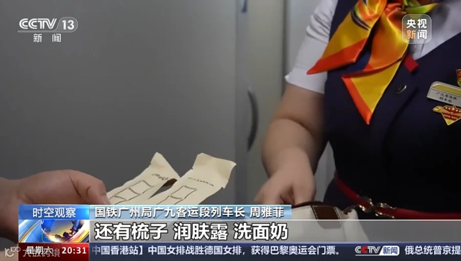 “车上配发的‘U彩洗漱包’内含牙刷、牙膏、梳子、两块压缩毛巾等一次性用品和洗面奶、润肤露等物品,方便乘车的旅客使用。”广铁集团客运部客管科高工马骁啸说。