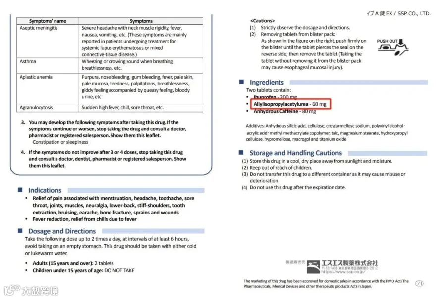除此之外,在日本非处方药不良反应报告中,含丙戊酰脲的非处方解热镇痛中“皮肤和皮下组织疾病”的不良反应报道率高。