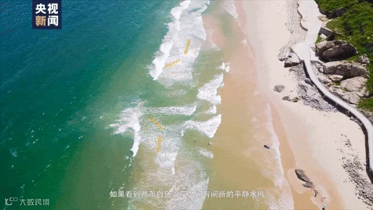 如果看到两条白色浪花之间,有间断的平静水域,且颜色与周围相比较深,那有可能就是离岸流发生的地方。