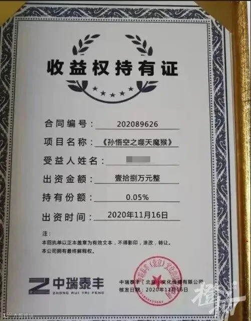 据此前媒体报道,早在2022年,多位网友曾反映自己被北京中瑞泰丰文化传播公司、北京八毫米文化传媒公司等公司以投资拍电影的名义骗取钱财。其中,有人投资《孙悟空之噬天魔猴》等三部电影被骗55万元。