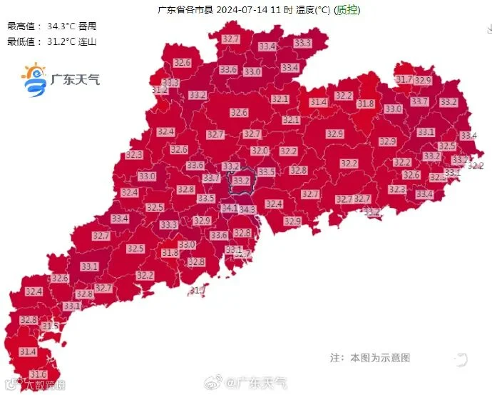 1.广东炎热天气维持,户外活动和作业注意防暑防晒。
