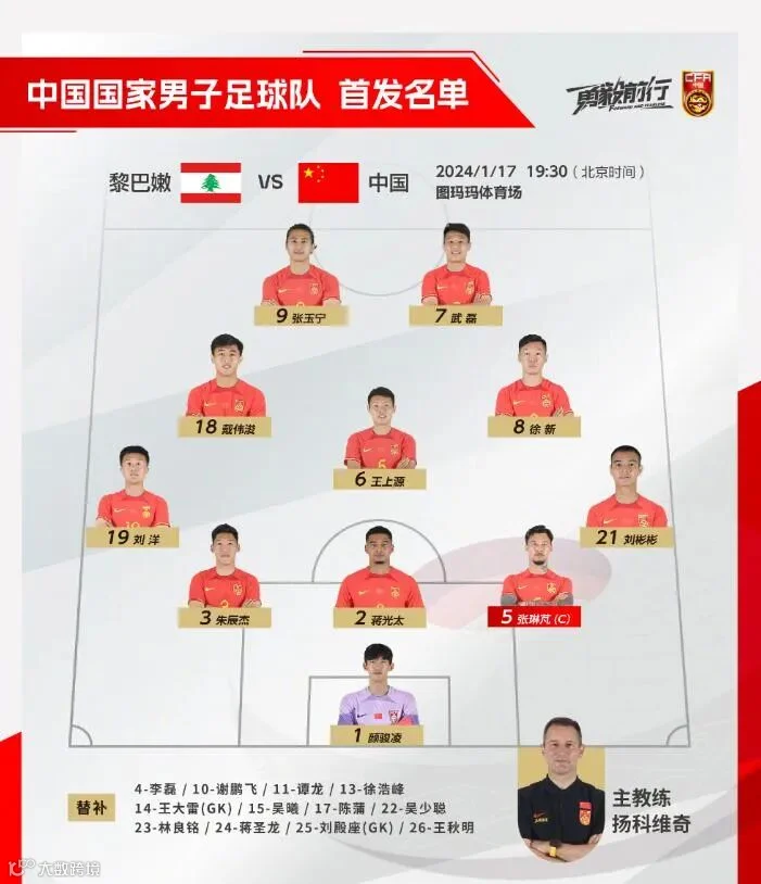 今晚对阵黎巴嫩,中国队调整了两处首发,徐新顶替王秋明,张玉宁替换了谭龙。