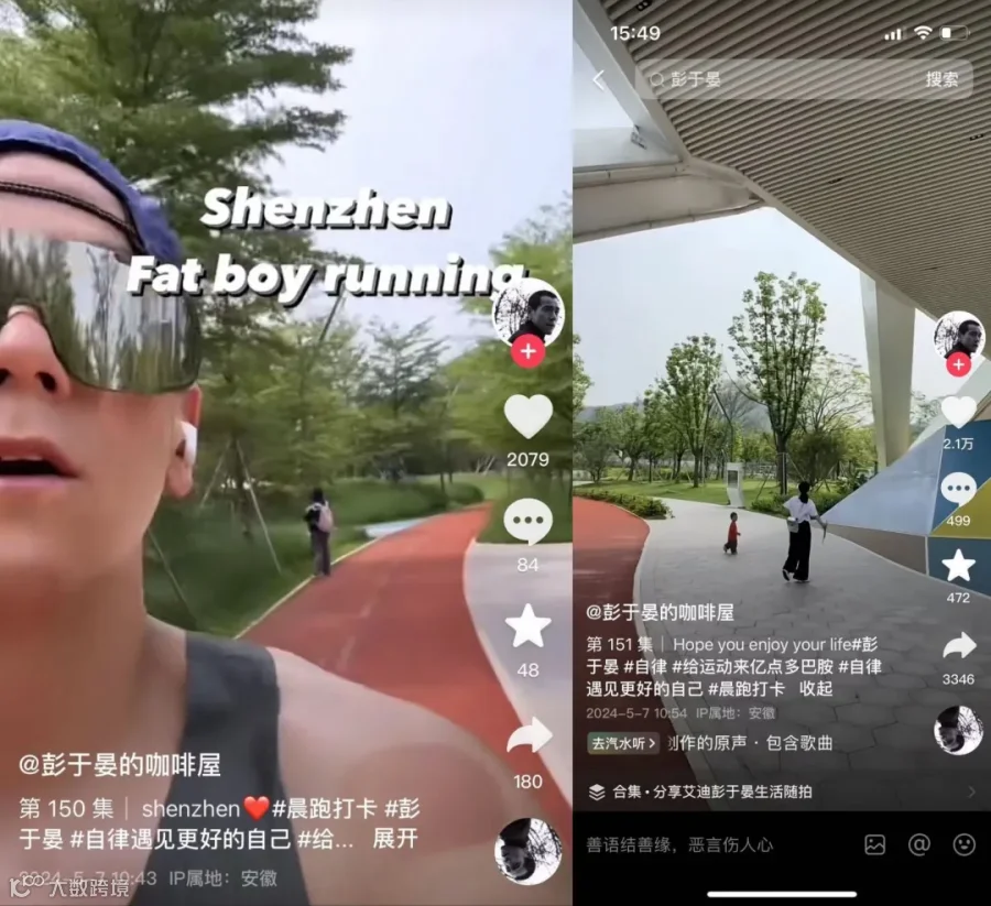 在社交平台晒出公园跑步锻炼视频