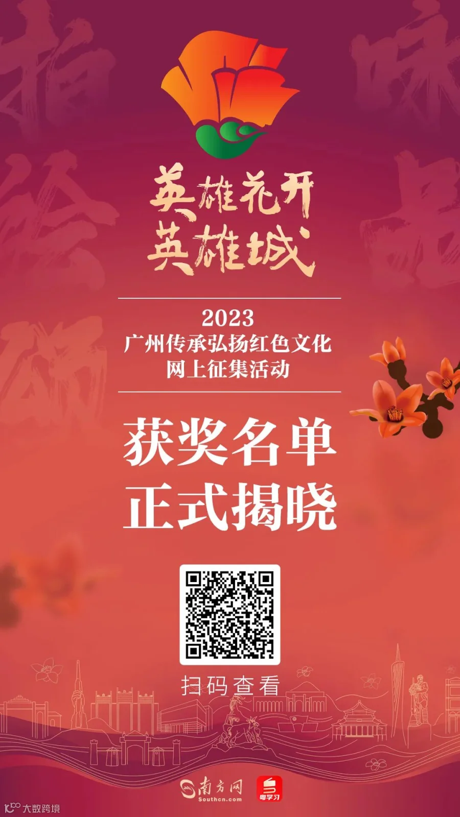“英雄花开英雄城”2023广州传承弘扬红色文化网上征集活动已圆满结束,更多粤学习精彩活动等你参与。
