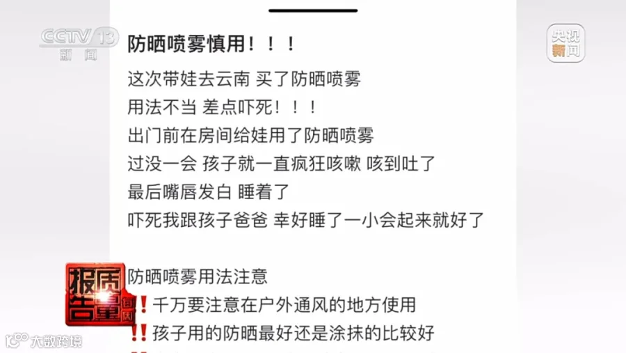 在网络媒体上,一条短视频显示,家长给孩子使用防晒喷雾时,孩子正在把玩手里的打火机,导致防晒喷雾瞬间变成喷火枪,灼烧儿童面部。