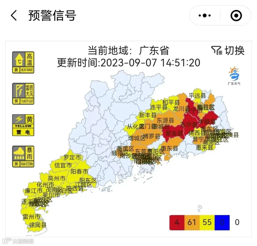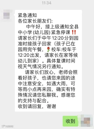 记者从五华县教育局获悉,为做好五华县教育系统气象灾害防范应对工作,切实保障校园和师生安全,决定全县各学校9月7日下午停课半天。同时要求各学校通过短信、微信群等方式,及时发布暴雨动态和避风避雨提示,提醒师生在暴雨期间非必要不外出,外出时要密切关注相关天气、灾害预报信息,做好安全防护措施,尽量避开山区、河流等危险区域。