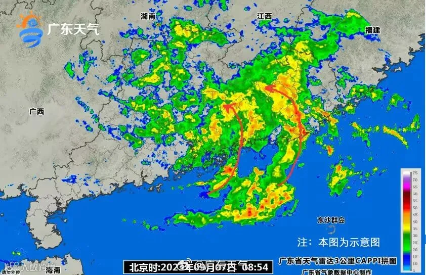 预计,7-8日,受“海葵”残余环流和季风影响,广东省大部仍有强降水,9-10日,南部沿海和粤西市县有中雨,局部大雨或暴雨。