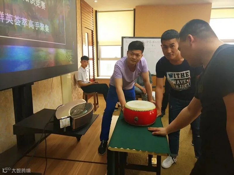 在这个环节,每个队伍派出一个人,站在前面,谁先把手放在鼓上,谁就可以先回答主持人的问题。