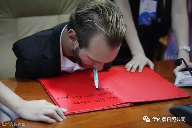 在尼克19岁的时候,他打电话给学校,推销自己的演讲。在被拒绝52次之后,他获得了一个5分钟的演讲机会和50美元的薪水。从此,他的演讲生涯开启了序幕。他嗓音富有磁性,思路清晰,语言幽默,最关键的,他有与众不同的人生经历可以与别人分享,给所有人坚持下去的力量。在多年磨练当中,他具备了异常坚韧的心智和丰富的阅历。这些精神上的素养完全弥补了肉体上的缺陷,帮助尼克超越了健全的大多数人,取得非凡的成就。
