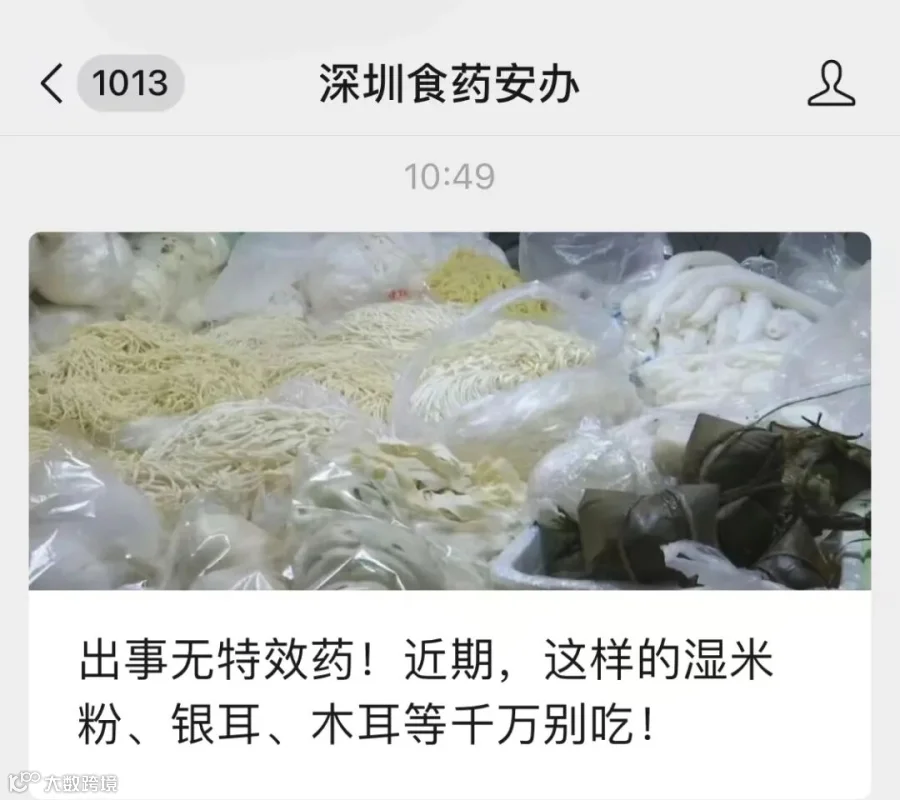 广东省市场监督管理局也发布提醒:湿米粉保质期一般为24小时,超过保质期请勿食用。
