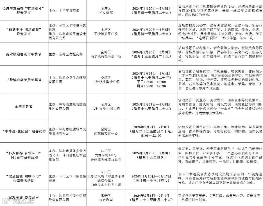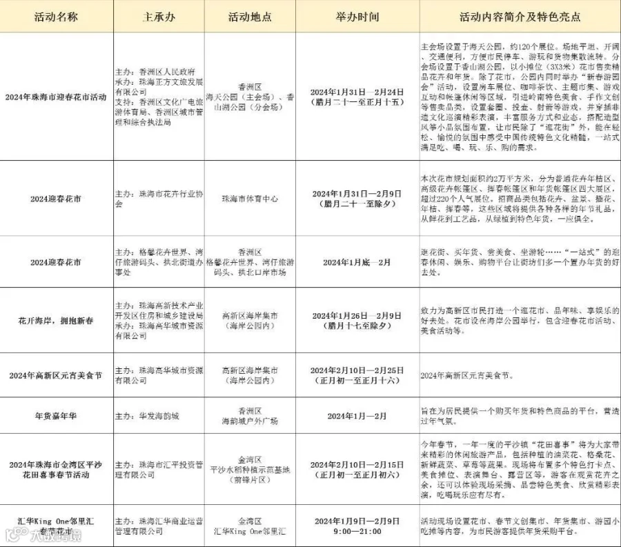 珠海整合推出“花市年货美食节类”
