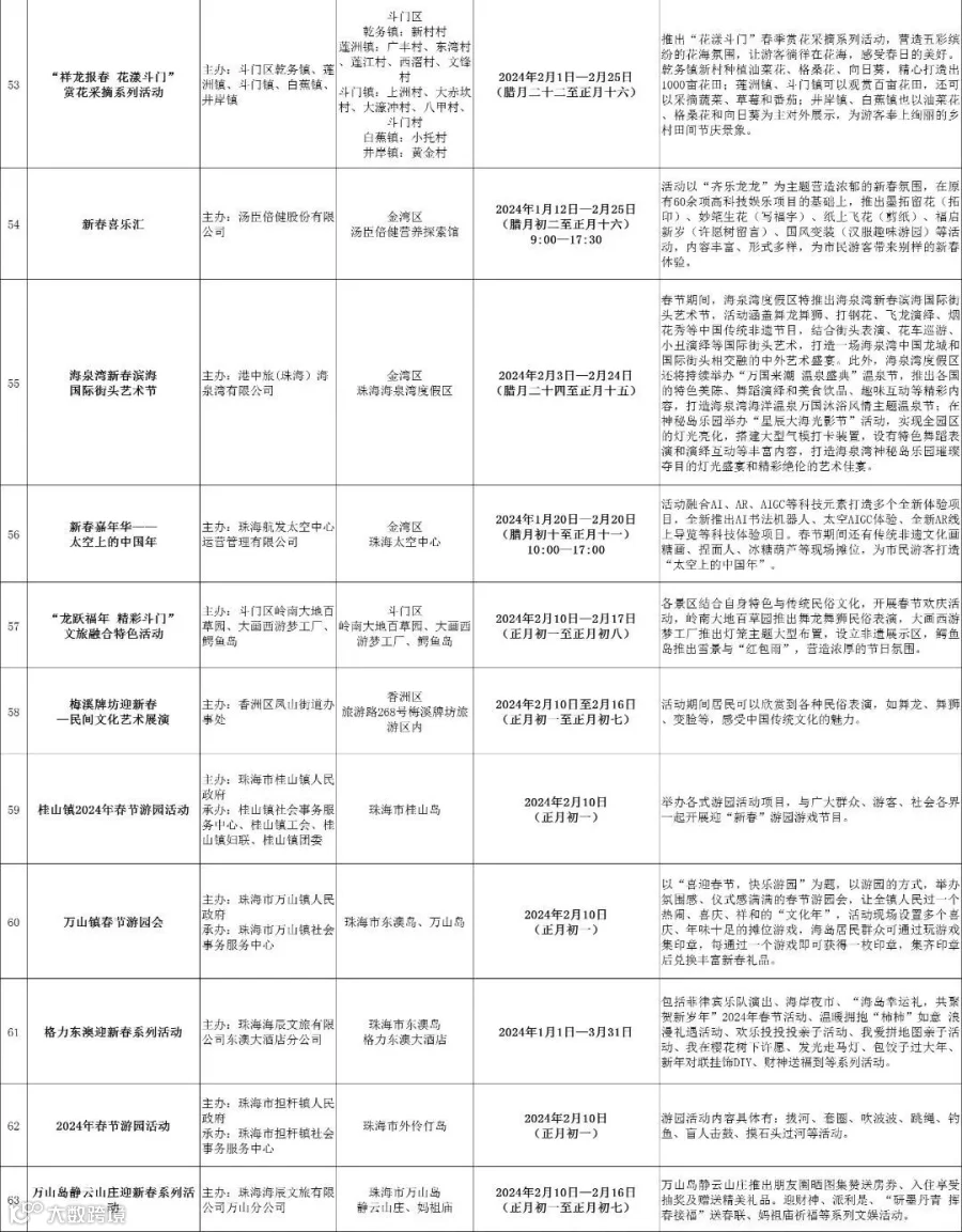 来源:综合自珠海政府网、珠海传媒集团、今日斗门、漫游珠海、甜蜜平沙等各景区