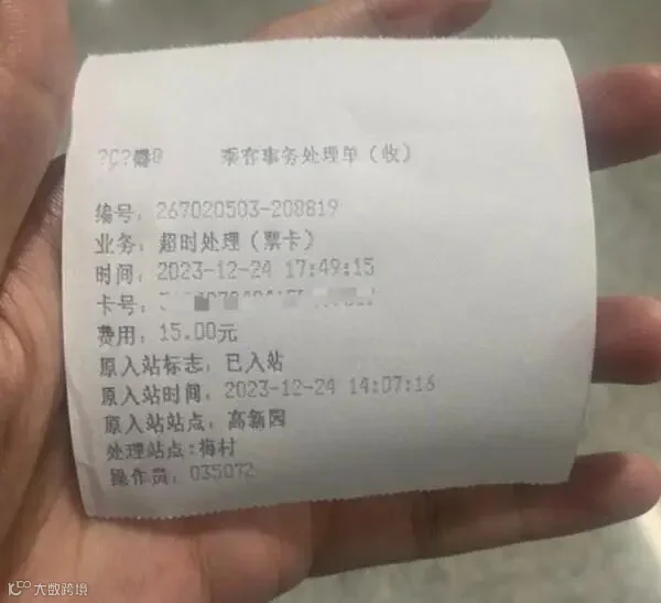 为此,记者拨打深圳地铁热线,一位客服人员回应称:“这不是罚款。在地铁内超过210分钟即3.5个小时,会被征收15元的超时服务费。”