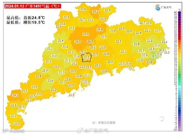 广东天气较平稳,气温波幅小