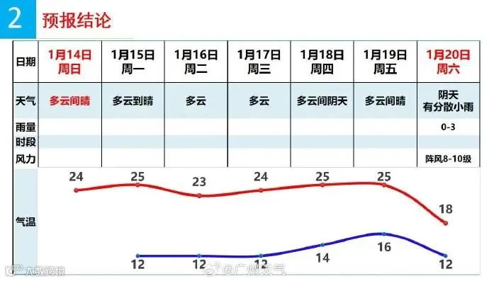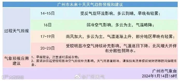 广州有一次中等强度冷空气的天气过程