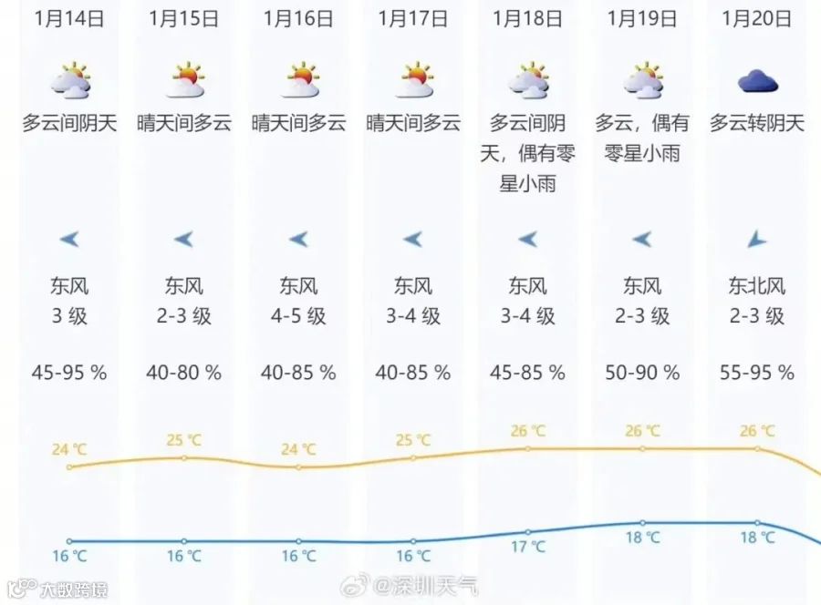 预计1月冷空气活动前弱后强,深圳市雨雾天气逐渐增多,干燥程度有所缓解。
