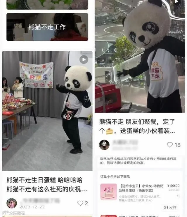 官网介绍称,熊猫不走蛋糕(惠州市熊猫不走烘焙有限公司),以自主创新的“产品+服务”模式,通过线上下单,熊猫人免费送蛋糕上门,提供跳舞、魔术等表演,致力于“让你的家人生日更快乐”。