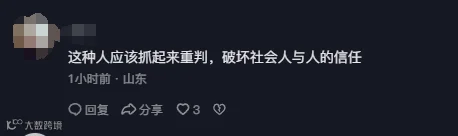 发布视频的博主在得知自己受骗后,表示:就算被骗也是只有十五块钱,但有可能会帮助到一个即将崩溃的人。《第二十条》里的一句话:所有正确的事情都有代价,但不能因为有代价就不去做。愿大家不要被这个社会给伤害到,永远保持一颗善良的心。