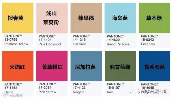 下面十个颜色的那个色盘就是潘通预测的2017春季流行主打色,翻译过来就是这样: