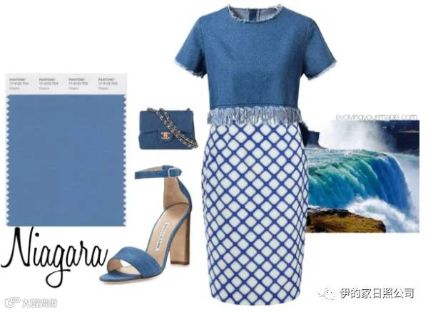 而上下半身分开来的尼加拉蓝+白,是特别有风格的组合方式。