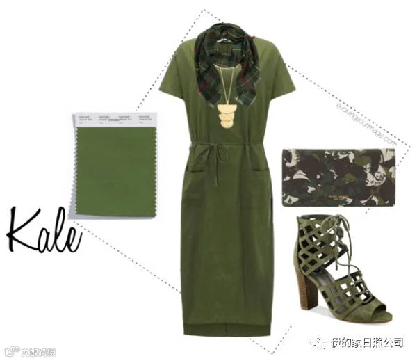 羽甘蓝绿的搭配,特别要留意的一点就是,不能与大面积的、彩度和明度都很高的鲜艳颜色搭配。这种搭配的最大问题就是会把原本非常清爽帅气的羽衣甘蓝绿变得脏兮兮的。
