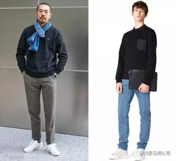 甚至,都不需要出动外套这样的大件,休闲西裤、围巾,再小到衬衫、POLO衫的领子……只要风格上差异足够明显,小件也能起到四两拨千斤的效果。