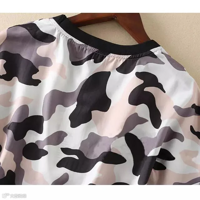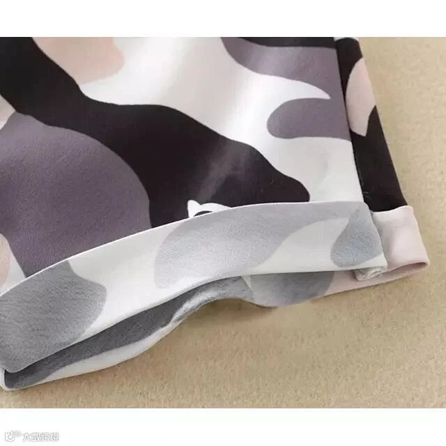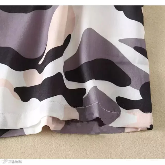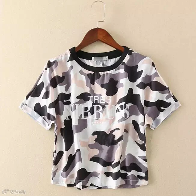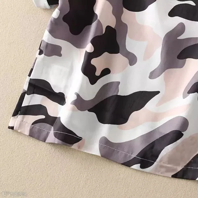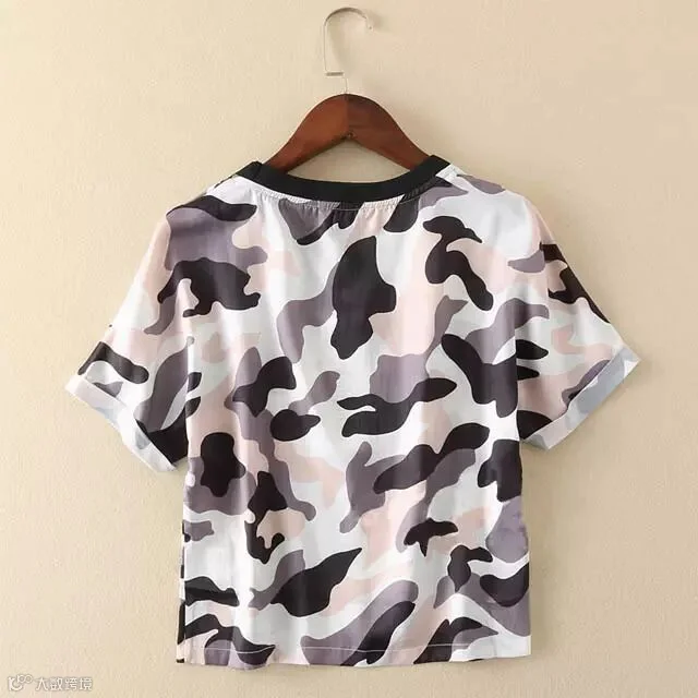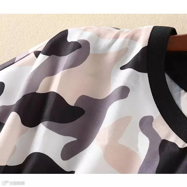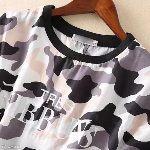 小黛推荐:国内单,很时尚的一款圆领卷连短袖仿绸迷彩T恤