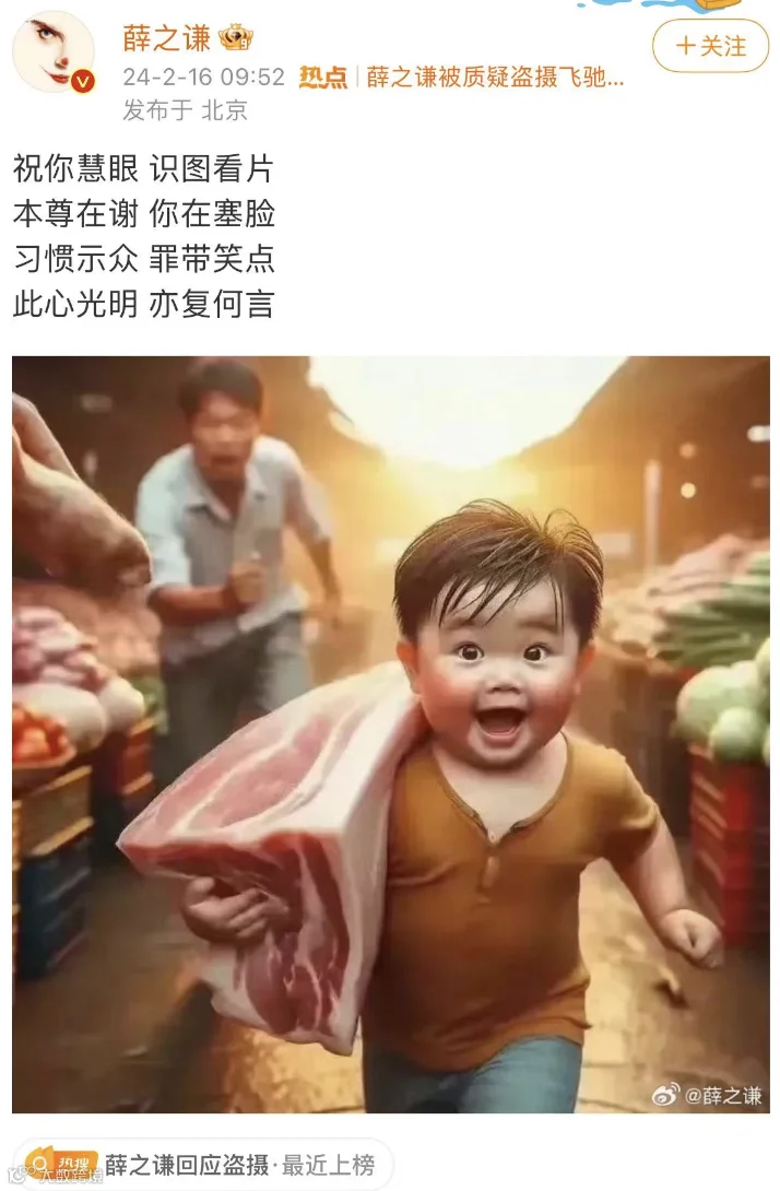 16日,薛之谦作一首“打油诗”,回应“盗摄”问题: