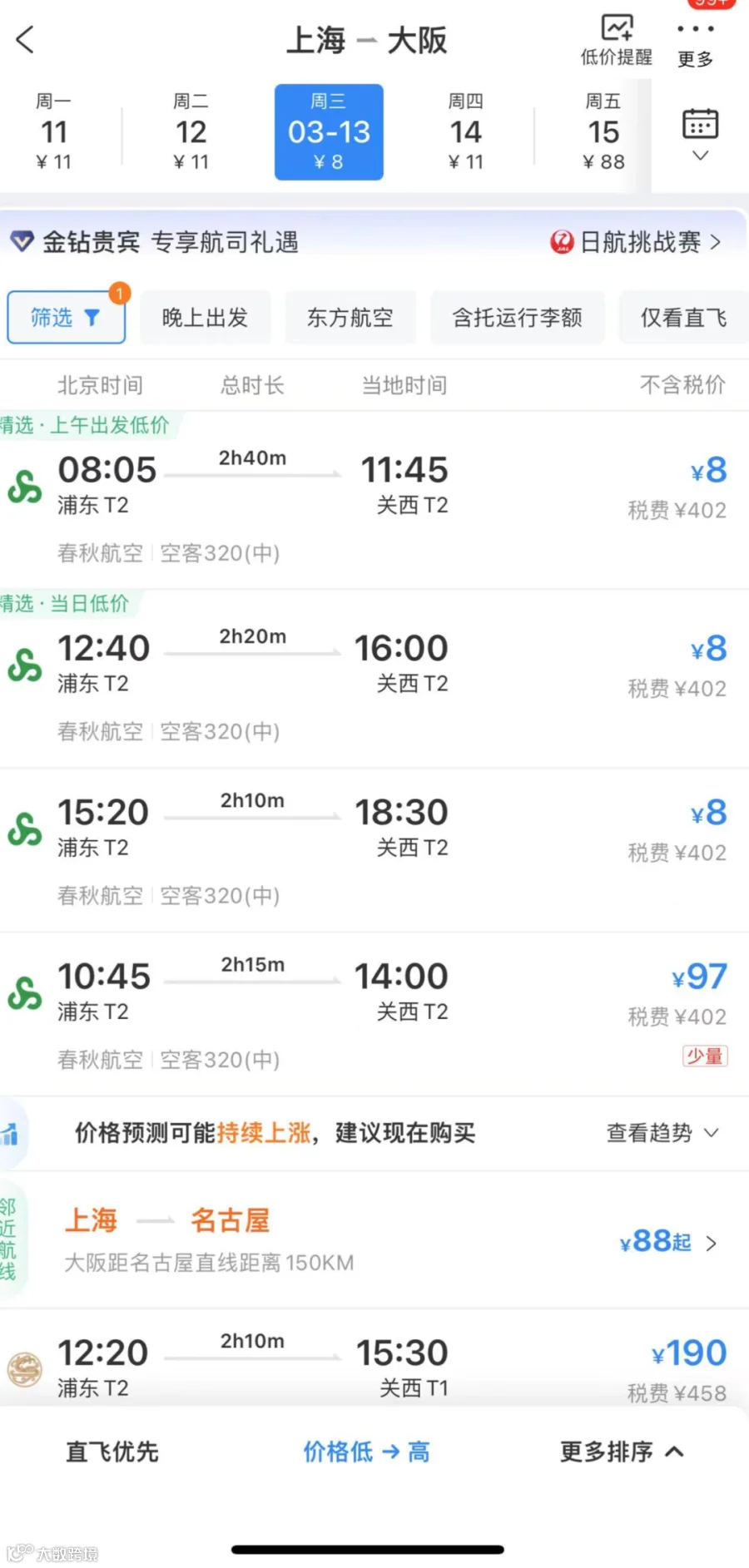 记者通过查询发现,8-11元的价格属于不含税价,可以选择的出发日期从2月下旬至3月中旬。