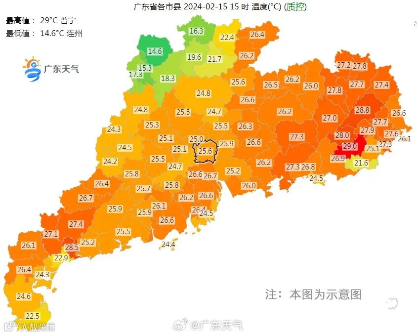 普宁以29℃位居榜首