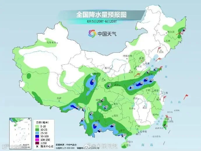 ③8月5日夜间至6日,青海东部、甘肃南部、陕西南部的部分地区有中到大雨,局地暴雨。