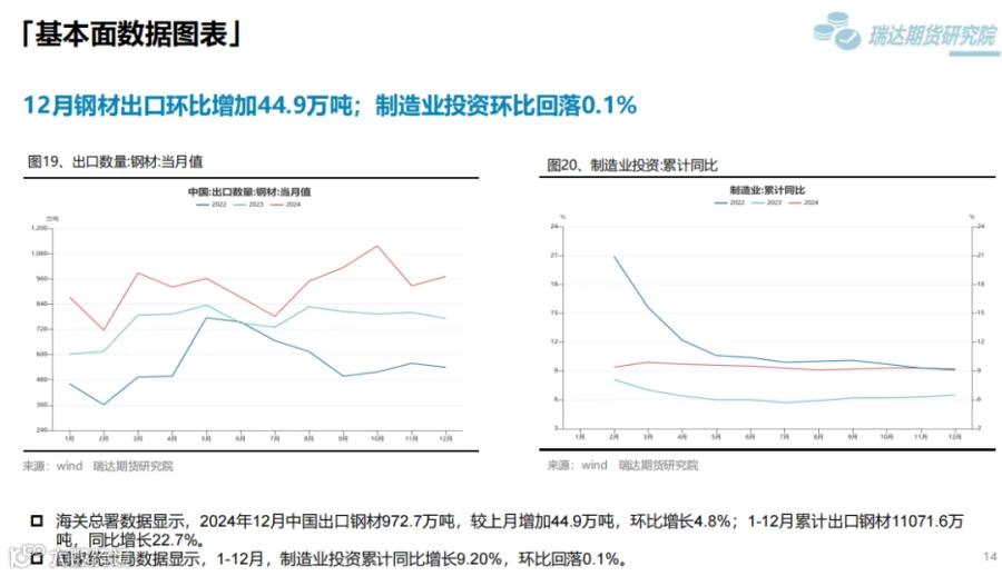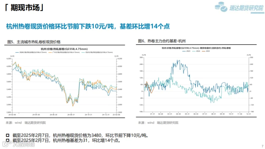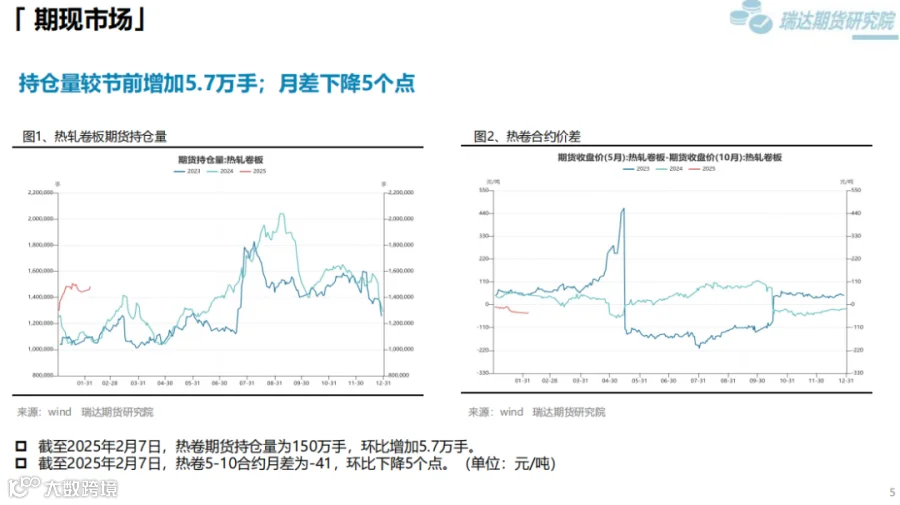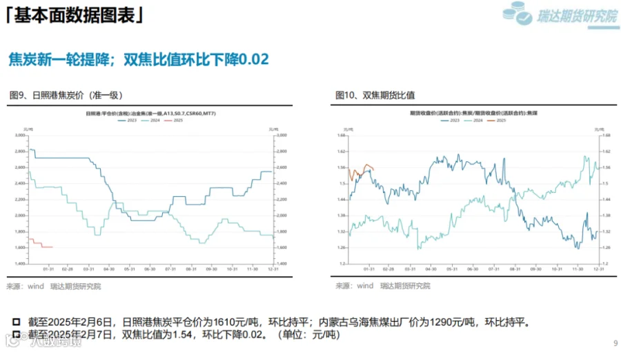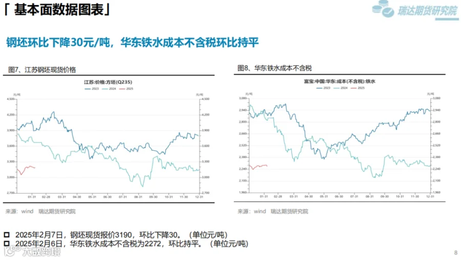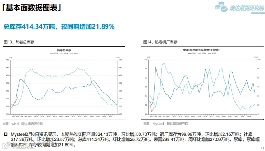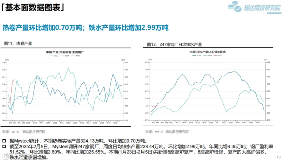 本周(1.17-2.7)供需方面,累库,累库幅度6.62%,库存较同期增加21.89%。成本支撑方面,双焦价格短期止跌,后续关注焦煤供应是否下降;铁矿方面,供应端一季度发运偏淡季。钢材短期成本支撑较强,中长期成本支撑还是需要看原料供应是否下降。