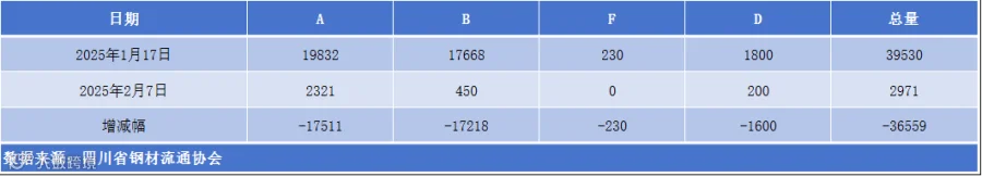 以上表单中的数据完全由川钢协信息统计部人员客观采集自相关钢厂、库房和贸易企业,川钢协力求数据及内容的准确、客观,但不能保证其完整性或准确性;本数据简报仅供浏览者参考,并不构成建议,川钢协不对该数据、简报及使用该数据和简报所导致的结果承担责任。