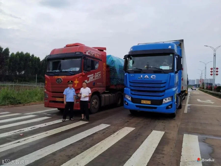 徐闻交通部门工作人员给滞留司机送来晚餐。