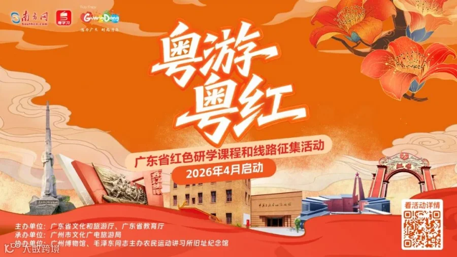 为推动广东红色研学从“资源驱动”向“价值驱动”升级,落实文化强省、旅游强省建设要求,由广东省文化和旅游厅、广东省教育厅联合主办的“粤游粤红”——广东省红色研学课程和线路征集活动正式启动,全省的文旅人、教育人、创意达人们,是时候秀出你们的“红色DNA”了!